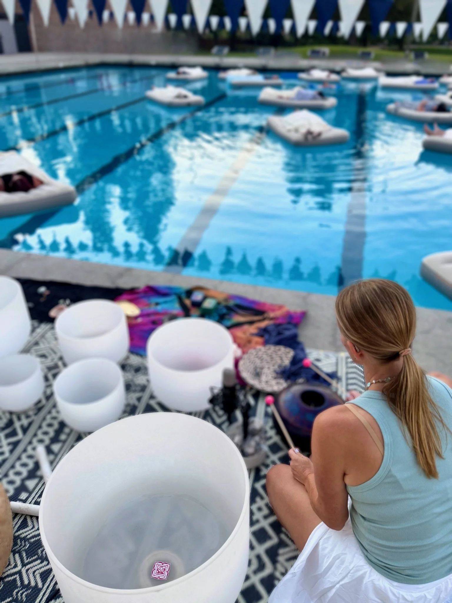 A floating sound journey is a deeply relaxing experience where participants lie on air mattresses in a warm indoor pool, surrounded by healing sounds like crystal bowls, chimes, and drums. While floating gently on the water, they are guided into a meditative state through sound vibrations that promote deep rest and emotional release. Participants stay completely dry as they rest comfortably on top of the water, fully supported and at ease.